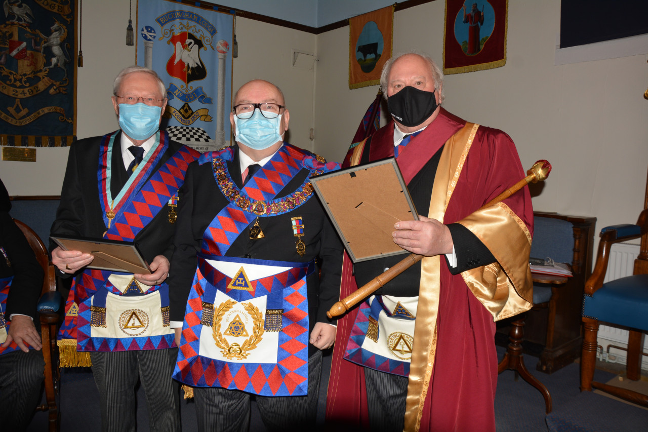 The well attended meeting was very special as well-loved Companion Stan Cochrane, who has been a member of the Buckingham Chapter for 51 years, was installed as First Principal of the Chapter along with Stephen Gill, who was installed as Second Principal and our Provincial Scribe E, Mel Shah a new joining member installed as Third Principal.
