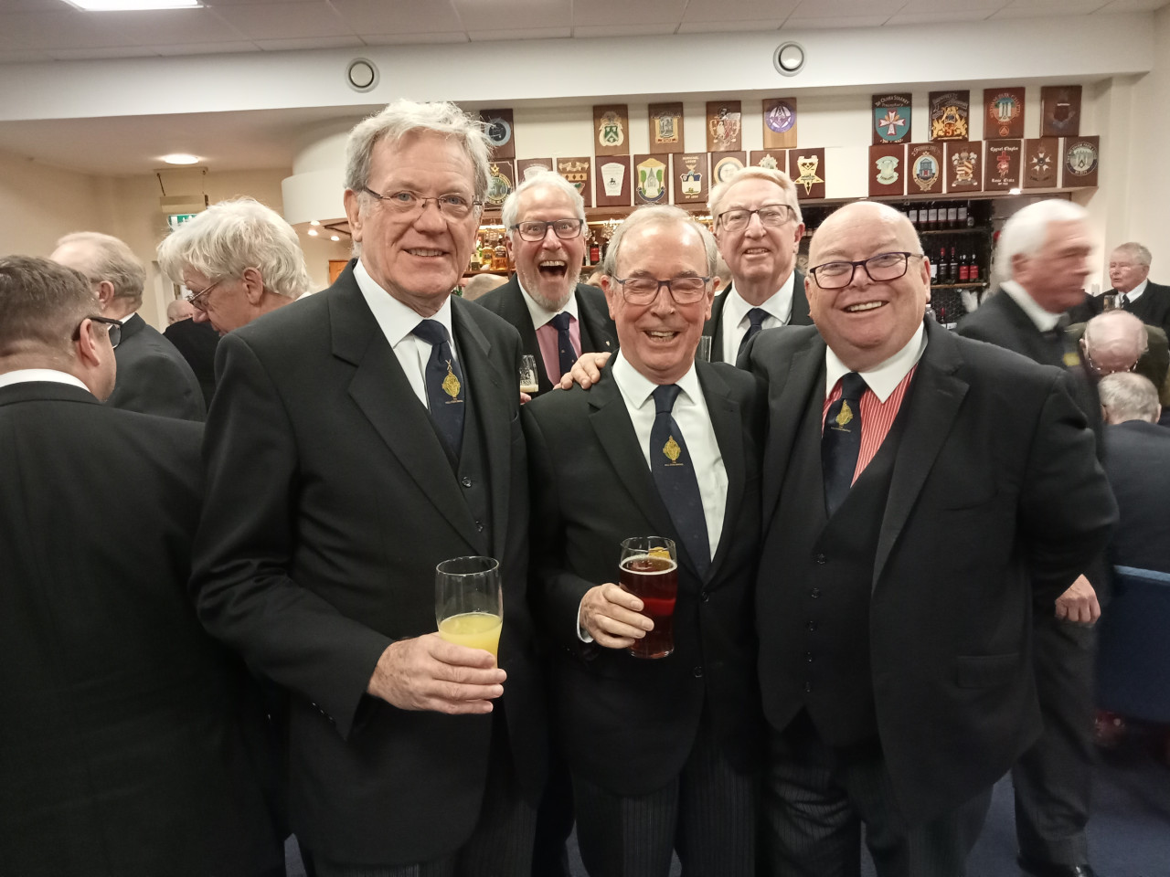 The Companions via the bar, dined together, Prawn Cocktail, Braised steak in Merlot sauce, vegetables and dauphinoise potatoes, Lemon torte with cream, Cheese and biscuits, good food, good wine, enjoyable speeches, but above all good company!