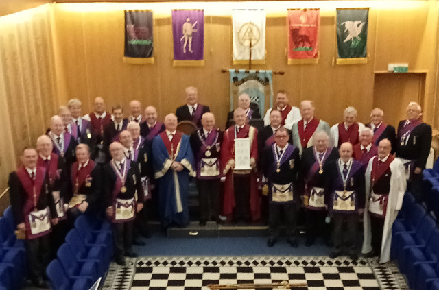 On Tuesday 28th of February, Hall Barn Chapter held a Regular Meeting at the Beaconsfield Masonic Centre. The meeting was very well attended along with a visit from our Second Provincial Grand Principal escorted and accompanied by Provincial Officers, also visiting members of Wexham Park Chapter escorting the Province's Traveling Altar of Companionship to Hall Barn Chapter.