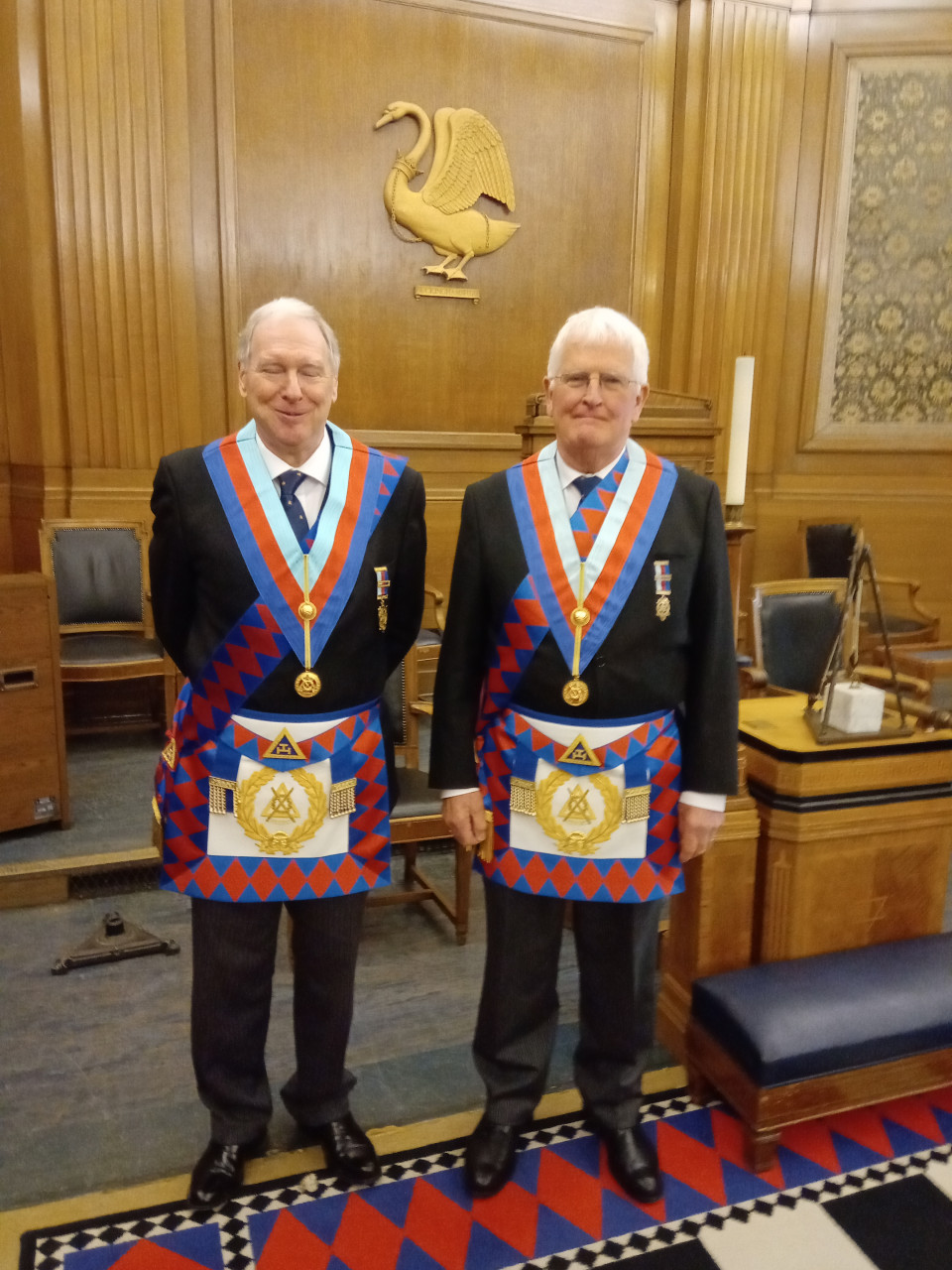 On Thursday the 28th April, 2022, at the investiture meeting of Supreme Grand Chapter of England the Pro First Grand Principal Most Excellent Companion Peter Lowndes, Invested E Comp Michael Lockie and Michael Phillips to the Grand Chapter rank of Past Assistant Director of Ceremonies.