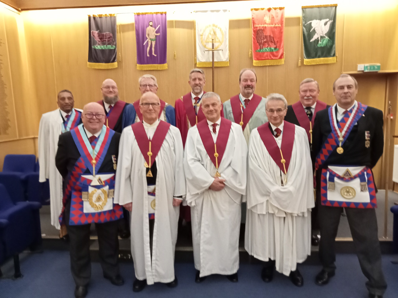This meeting was special, as the ceremony of "passing of the veils" was demonstrated by the Stewards. The wonderful ceremony 'passing of the veils', which is performed prior to a candidate entering the Chapter room and being exalted – a ceremony which is only actively performed now days in England by the Province of Bristol.